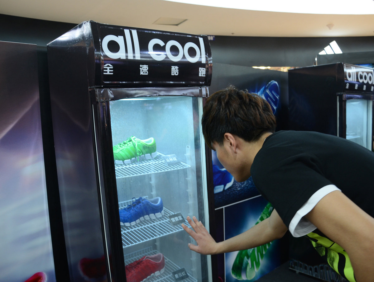“冰箱中的清風跑鞋”,消費者細心觀察陳列在冰箱中的 ClimaCool Ride 清風跑鞋
