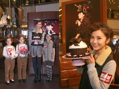 活動(dòng)期間,蔡卓妍與大家分享了拍攝時(shí)的趣事,阿Sa并即場發(fā)揮無限創(chuàng)意為小女孩設(shè)計(jì)朱古力造型,以及接受小朋友送上的精美朱古力禮品,一同投身朱古力王國,尋找甜蜜足跡。 本次拍攝宣傳照片的頭飾,更邀得曾為Lady Gaga及Rihanna等天后級(jí)歌手制作無數(shù)驚艷頭飾及帽子的設(shè)計(jì)師 Piers Atkinson制作小櫻桃頭飾。阿Sa需要戴上重4磅的頭套,以假發(fā)繞成朱古力的模樣,并在小櫻桃插上一根特大的叉,配合展覽主題。除此之外,化妝方面亦要灑上大量朱古力粉!