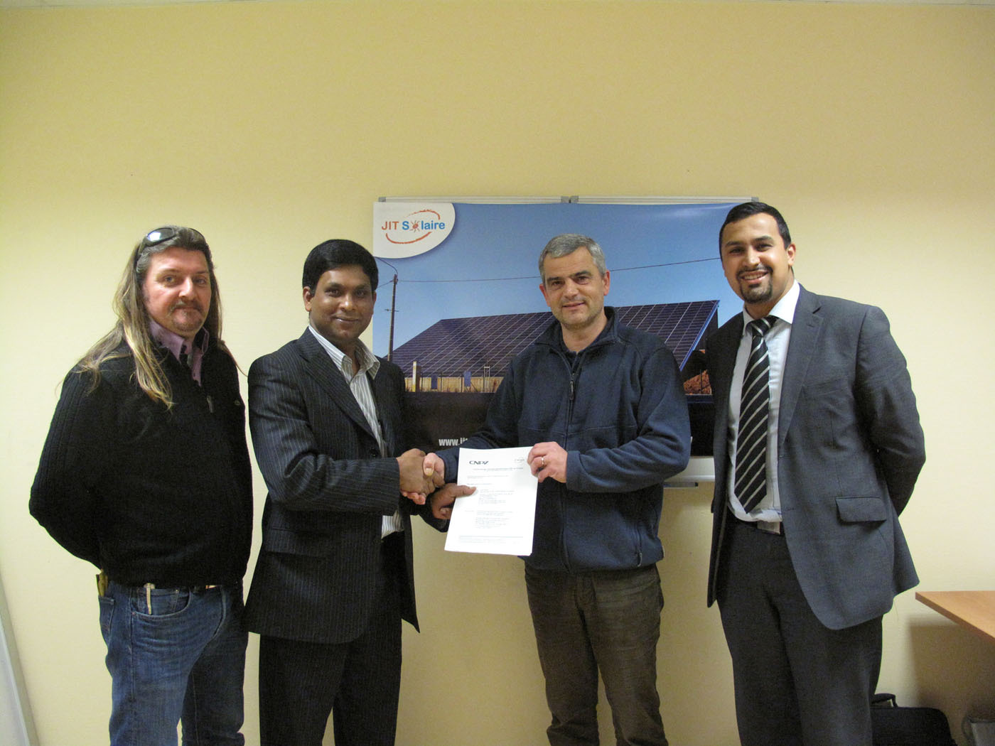 CNPV 首席執行官張順福先生和 CNPV 首席運營官兼董事會成員 B. Veerraju Chaudary 先生共同表示:“能與 JIT Solaire 建立緊密的合作關系,后又達成戰略協議,我們感到十分高興。他們作為項目開發商和安裝商的經驗,使我們能夠更加深入地了解最終用戶的要求;我們非常重視這些要求并將其融會貫通。我們全面履行太陽能光伏采購合作義務的決心,將通過此項協議的簽署得到進一步實現。能夠滿足 JIT Solaire 的嚴格要求,成為他們首家亞洲長期戰略光伏產品供應商,我們備感榮幸。”