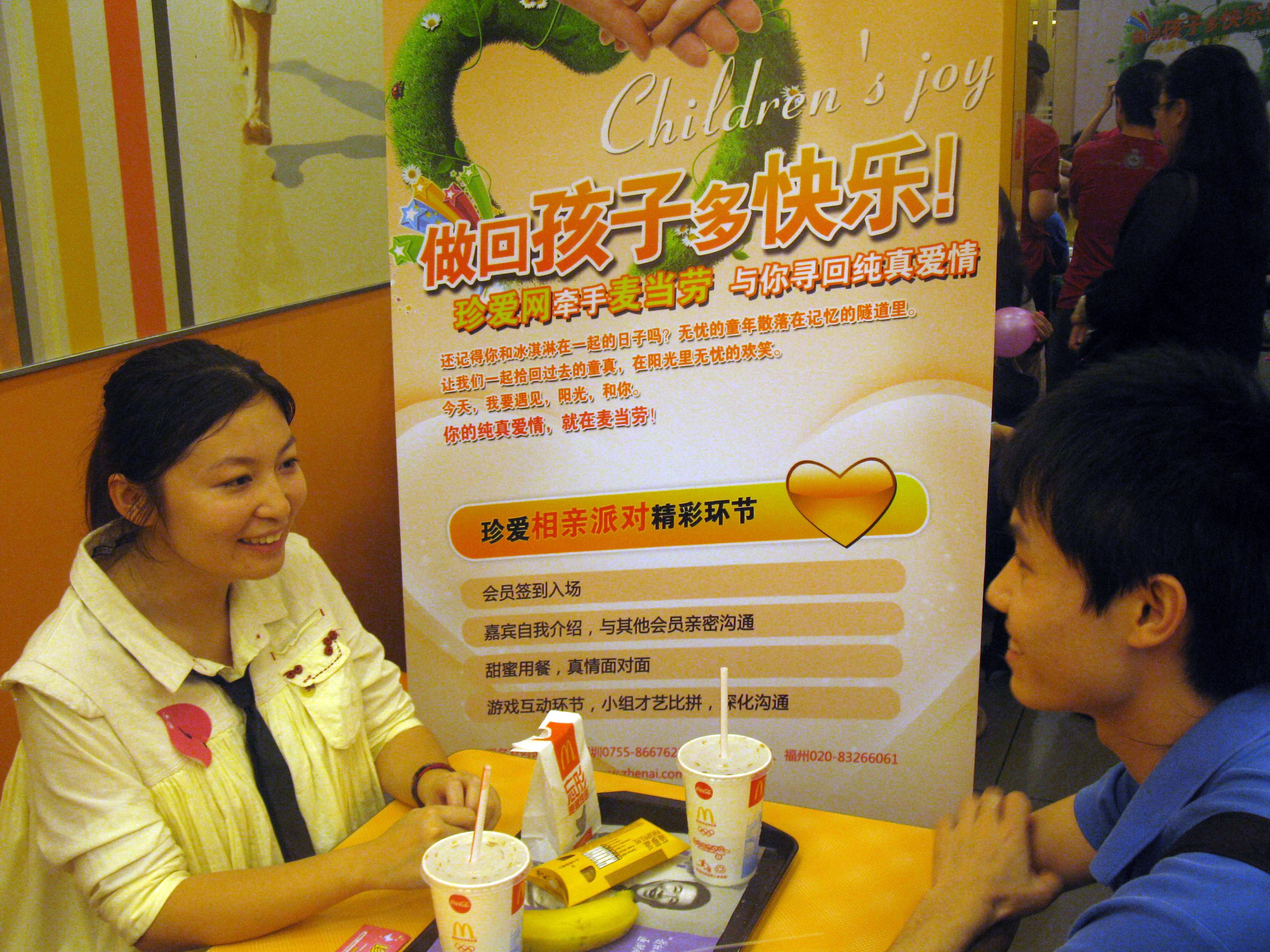 為了滿足2800萬用戶的更多需求,珍愛網把視野鎖定在了全球知名餐飲連鎖機構 -- 麥當勞。雙方達成一致協議,珍愛網提供會員,麥當勞提供場地,把相親約會引入麥當勞餐廳。