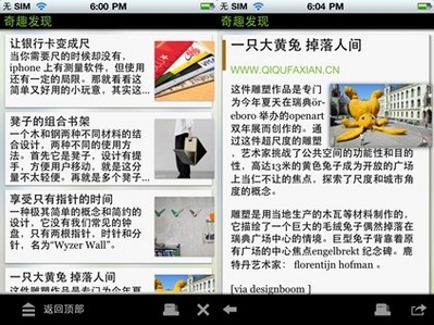 用看雜志的方式閱讀網(wǎng)頁(yè),華麗的頁(yè)面效果,全新的交互體驗(yàn),別出心裁的設(shè)計(jì)帶來(lái)眼前一亮的感覺(jué)。支持傳統(tǒng)網(wǎng)頁(yè)瀏覽方式和海豚看看方式轉(zhuǎn)換。