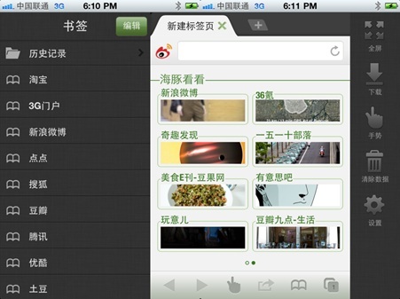 最新發(fā)布的海豚瀏覽器 iPhone V1.0版本功能亮點(diǎn):
