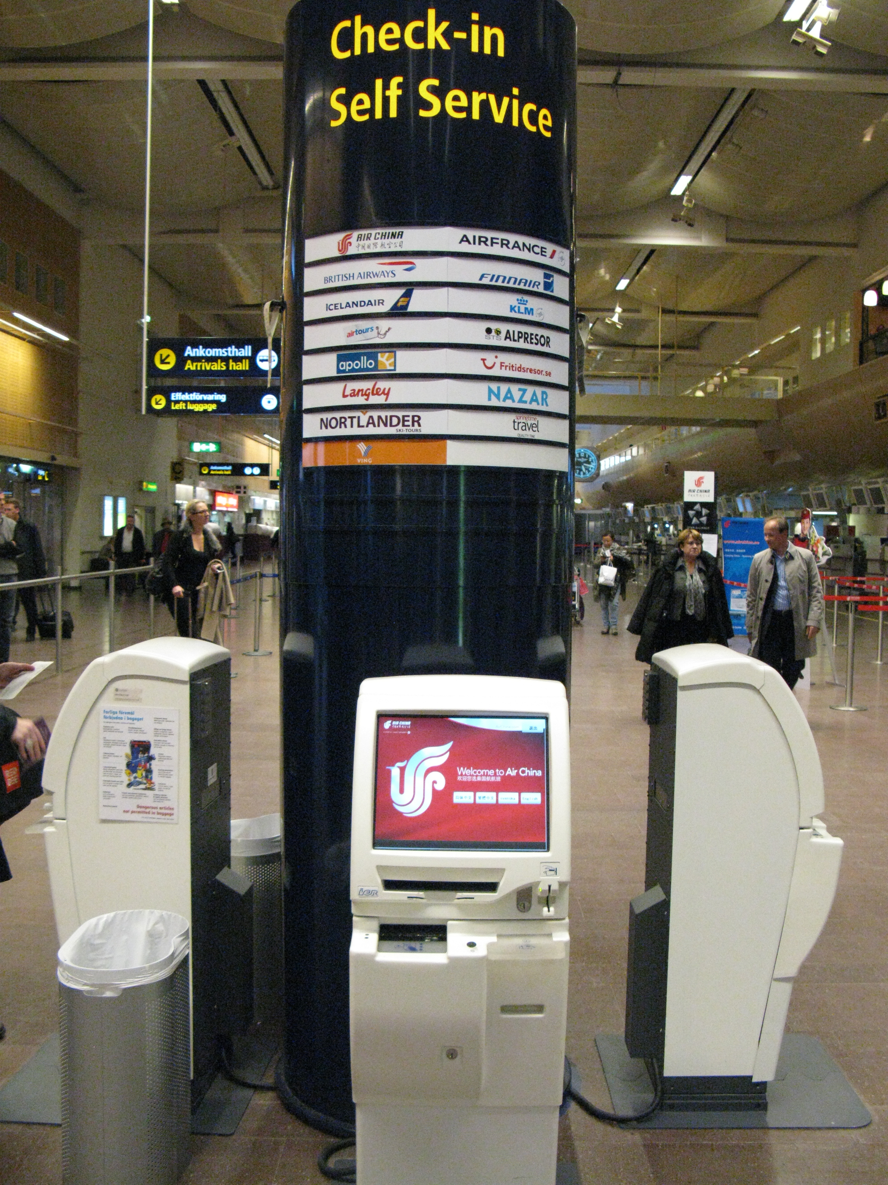 國(guó)航依據(jù)國(guó)際航協(xié) IATA 的行業(yè)標(biāo)準(zhǔn),以國(guó)航整體發(fā)展戰(zhàn)略為指導(dǎo)。為了簡(jiǎn)化更廣大旅客的出行手續(xù),國(guó)航于2011年10月25日在斯德哥爾摩阿蘭達(dá)機(jī)場(chǎng)成功推出機(jī)場(chǎng)自助乘機(jī)登記服務(wù)。此次國(guó)航開通的自助乘機(jī)登記服務(wù)操作系統(tǒng)頁(yè)面美觀,功能完善,流程清晰。可支持辦理斯德哥爾摩始發(fā)經(jīng)北京中轉(zhuǎn)國(guó)內(nèi)聯(lián)程航班的值機(jī)手續(xù)。并支持中、英、繁體中文、瑞典語(yǔ)多語(yǔ)言版本。旅客可以按照系統(tǒng)提示完成自行選擇座位,累積國(guó)航知音里程、補(bǔ)打網(wǎng)上乘機(jī)登記服務(wù)登機(jī)牌等一系列操作。完成乘機(jī)登記手續(xù)后旅客可持登機(jī)牌直接通過安檢后登機(jī),無須再耗費(fèi)在人工柜臺(tái)排隊(duì)等待服務(wù)的時(shí)間,為旅客提供了便捷的服務(wù)體驗(yàn)。