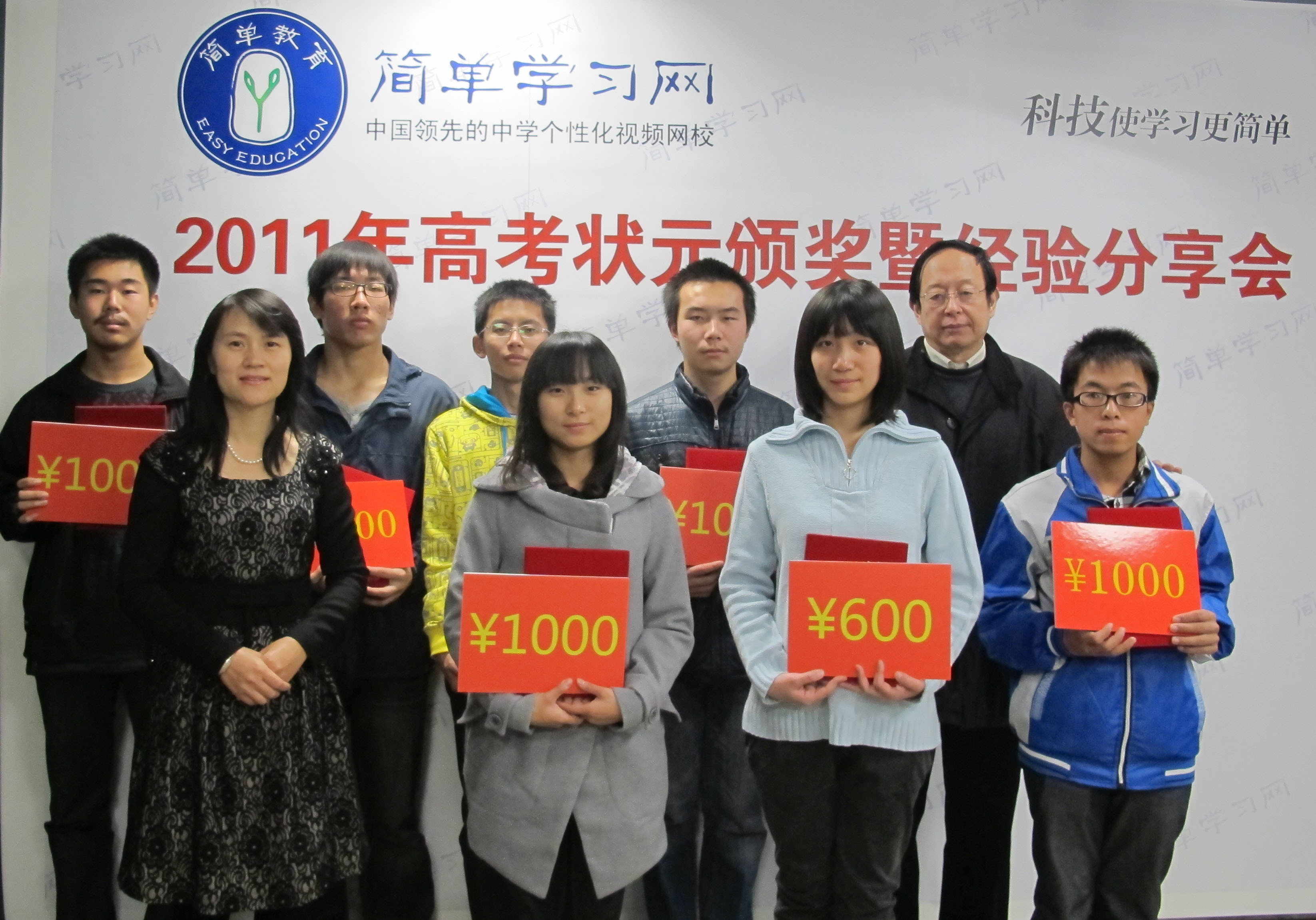 北京2011年10月31日電 /美通社亞洲/ -- 2011年10月30日上午10點,由簡單學習網主辦的“201年高考狀元頒獎暨經驗分享會”在簡單學習網北京總部拉開帷幕。語文特級教師王大績老師、簡單學習網教學總監曾萍出席了頒獎典禮,為11名高考狀元、優秀學員頒獎,整個頒獎典禮通過網絡在線直播,并通過簡單學習網新浪微博、騰訊微博等同步直播,數千名全國各地學員在線觀看了本次頒獎典禮。
