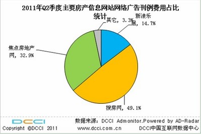 搜房網2011年 Q3房產類廣告價值估算高達2.79億元,占行業整體的62.5%,遠超其他競爭對手。