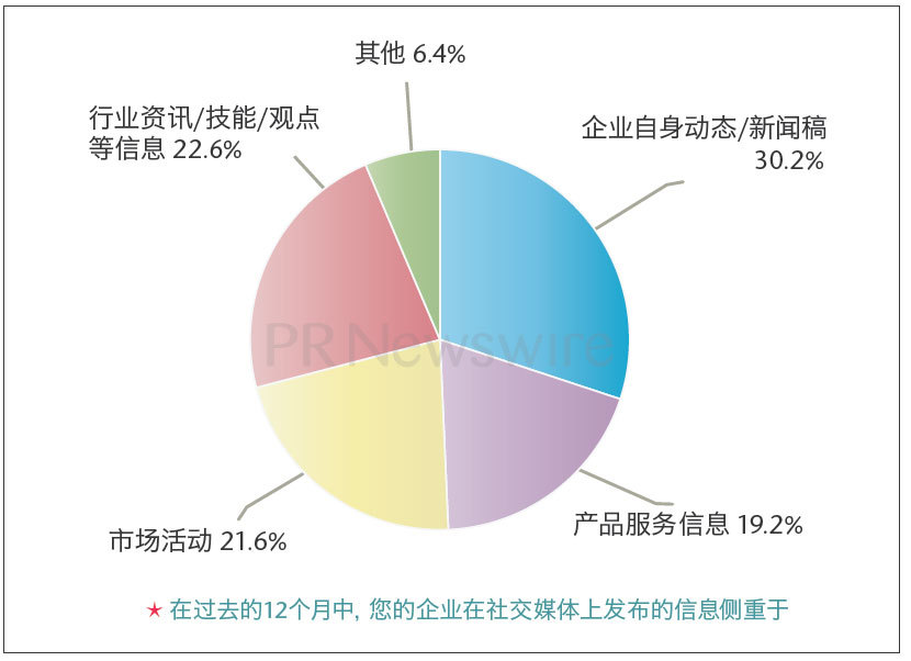 在過去的12個月中,您的企業(yè)在社交媒體上發(fā)布的信息側(cè)重于