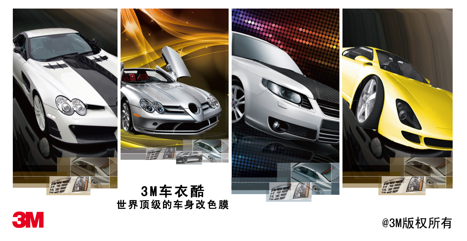 此次,3M公司現正式推出三個系列的車身改色膜產品:金屬拉絲、亞光和碳纖維系列,這三種材質表面都是目前歐美最為流行的材質。在中國,金屬拉絲系列尚屬首例,而在不遠的將來,將有更多顏色,如高光、珠光系列陸續推出。經過”車以酷”換顏的個性化汽車將成為馬路上靚麗的風景。