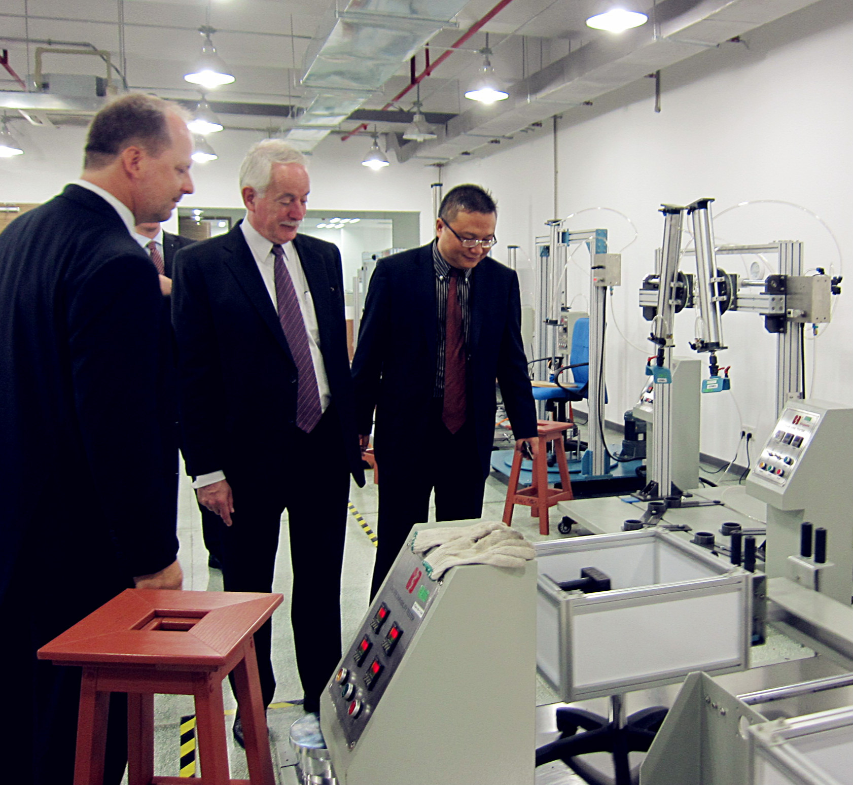 當(dāng)天上午,TUV SUD 副總裁 Mr. Wolfgang Hubl 與廣州分公司總經(jīng)理黃力坤先生在廣州慕尼黑會(huì)議室親自為德國(guó)領(lǐng)事 Mr. Stefan Gallon 及其同事介紹 TUV SUD 的服務(wù)與合作項(xiàng)目。隨后,由黃力坤先生與 TEC 實(shí)驗(yàn)室經(jīng)理郭大軍先生帶領(lǐng)德國(guó)領(lǐng)事 Mr. Stefan Gallon 及其同事參觀廣州分公司的辦公區(qū)和實(shí)驗(yàn)室,特別是今年6月新建的制冷實(shí)驗(yàn)室,該實(shí)驗(yàn)室專業(yè)為空調(diào)、熱泵及冷凍冷藏產(chǎn)品提供檢測(cè),并于2011年中成功申請(qǐng)了中國(guó)國(guó)家認(rèn)可實(shí)驗(yàn)室 CNAS,德國(guó) ZLS 審核和美國(guó)能源之星服務(wù)認(rèn)可,由此 TUV SUD 可以按歐洲、美洲、澳洲等國(guó)家和地區(qū)電器安全和性能標(biāo)準(zhǔn)提供檢測(cè)服務(wù),進(jìn)一步提升 TUV SUD 在制冷行業(yè)的影響力。