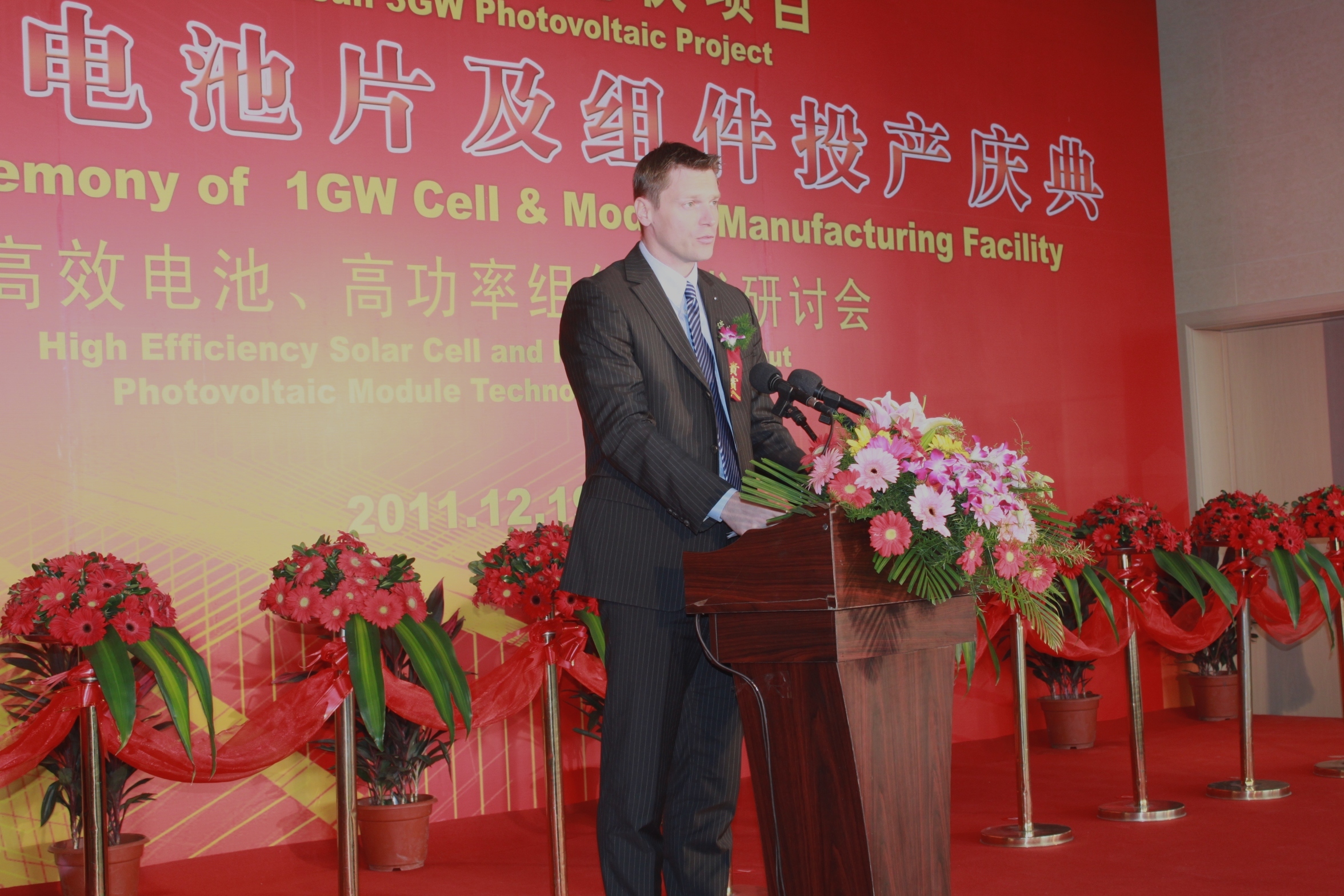 上海2011年12月21日電 /美通社亞洲/ -- 上海2011年12月19日,全球知名第三方技術服務公司TUV 南德意志集團受邀出席了中利騰暉太陽能光伏電力有限公司(簡稱:中利騰暉)的 1GW 太陽能電池及組件投產慶典儀式。中國可再生能源學會光伏專委會吳達成,江蘇省光伏產業協會、江蘇省可再生能源辦公室許瑞林,常熟市委書記惠建林等四套班子主要領導出席此次慶典并發表了講話。TUV 南德意志大中華集團副總裁 Wolfgang Hubl 先生作為認證機構代表也向中利騰暉太陽能二期投產表示了由衷的祝賀。