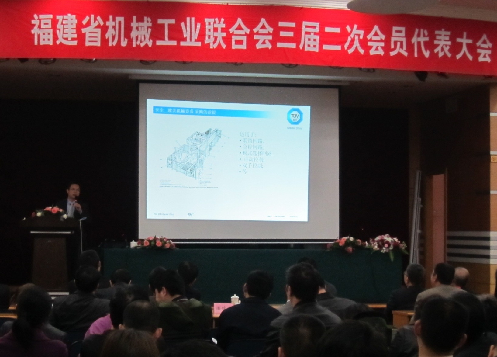 福州2012年4月1日電 /美通社亞洲/ -- 近日,由福建省經濟貿易委員會,福建省財政廳主辦的福建機械工業轉型升級講座暨福建省機械工業聯合三屆二次會員大會在福州隆重召開,TUV 南德意志集團應邀出席此次大會并做了有關機械設備出口歐美安全方面的發言,為福建省機械工業企業了解歐美有關機械設備安全法規,機械設計安全性能,提升質量,促進產品向高端化發展提供了指導性的建議,同時為出口企業更好地突破貿易壁壘,獲取通往歐美等全球主要市場的認證,走向全球市場提供了有力的技術保障。