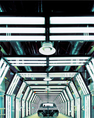 飛利浦照明與寶馬華晨的合作迄今已有十年。在2011年完成的寶馬華晨二期項(xiàng)目中,設(shè)計團(tuán)隊結(jié)合流水線的工藝環(huán)境,為沖壓、焊接、油漆、總裝等四大生產(chǎn)環(huán)節(jié)設(shè)計了全線使用 DALI 控制的照明解決方案。實(shí)際工作中,操作者可以通過系統(tǒng)終端,對全廠數(shù)萬套 TTX188 與 T5 產(chǎn)品組合進(jìn)行編程、監(jiān)測、控制,以求較大限度地適合柔性生產(chǎn)流水線的照明要求,同時較大限度地節(jié)能和利用了電力,滿足了寶馬無論是對生產(chǎn)線還是產(chǎn)品都精益求精的專注要求。