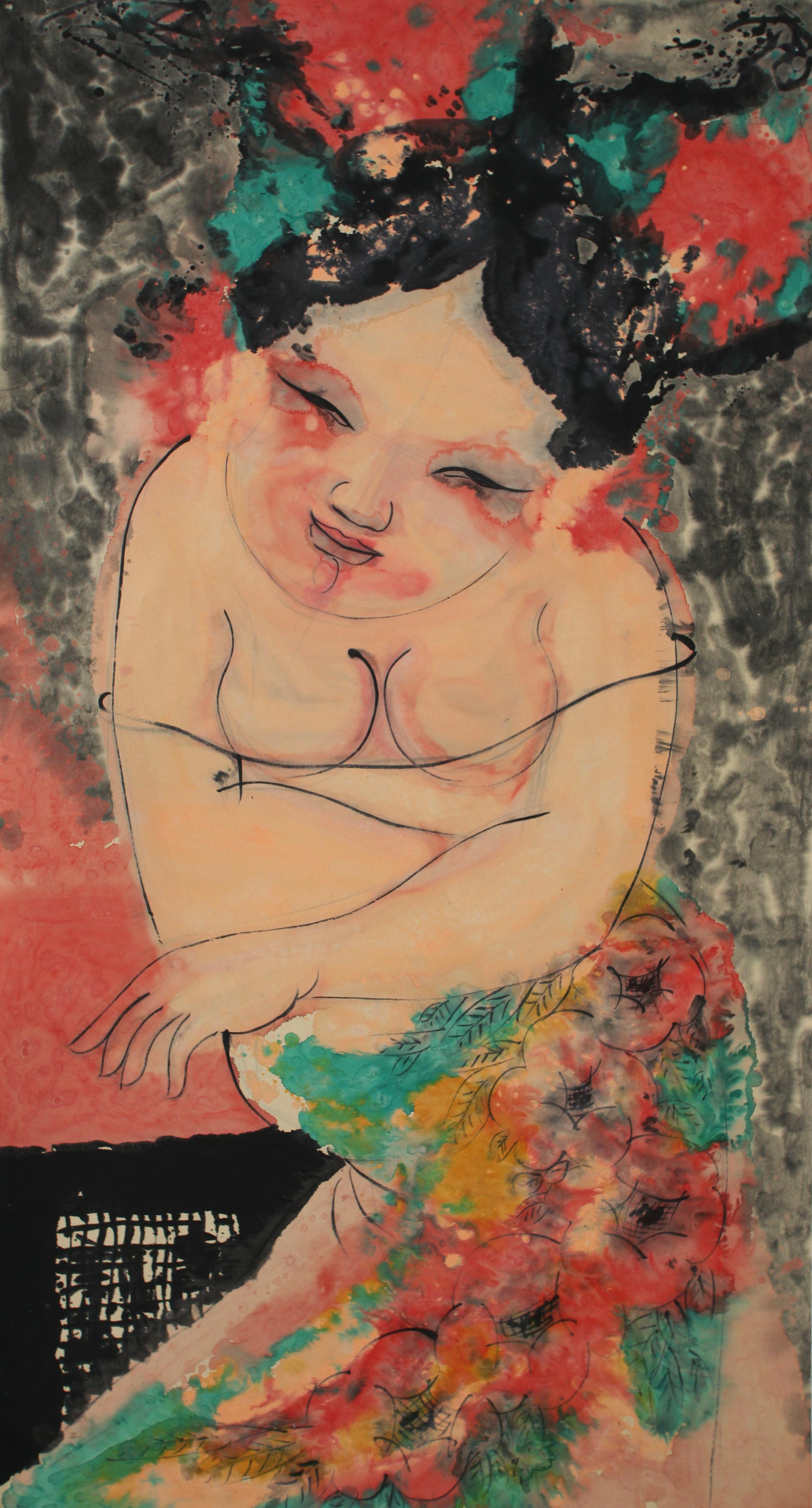童振剛中國畫筆墨功夫深厚。他的創(chuàng)作,強(qiáng)調(diào)以線造型,水墨暈染層次清晰。用色或大紅大綠,或黑白分明。雖然用的是傳統(tǒng)的中國畫工具,但童振剛的藝術(shù)態(tài)度強(qiáng)調(diào)創(chuàng)作的當(dāng)代性。這就是童振剛的自在。他以他神定氣閑的精神狀態(tài),以及彈性十足的表現(xiàn)手段,深情地演繹出了一種當(dāng)代“游世”的藝術(shù)風(fēng)格。這就像他表現(xiàn)那些藏匿于深閨中的美女形象,筆端上的流露從來都不見肉欲橫流,而只見情深意切的愛心一樣。人物輪廓大處以線勾勒,婉轉(zhuǎn)流暢;細(xì)微之處,如頭飾、面頰等則專事暈染,以色墨填充,界域自然渾成,毫無雕琢之匠氣。人物神態(tài)悠然,眼神或欣悅、或淡然、或迷離,甚至隱有一絲鄙夷和傲然。他的藝術(shù)不是空中樓閣、飄渺煙云,雖然也并非現(xiàn)實(shí)記錄、具象寫實(shí),但總有某些撩人神經(jīng)末稍的情趣,滲透著他對(duì)人世間諸多細(xì)膩的生命體驗(yàn)……水墨不是原來的水墨,女人也不是原來的女人,世界也不是原來的世界,童振剛的藝術(shù)也更不是原來的那種藝術(shù)。他的藝術(shù)在不斷的衍生之中展開自己的意義。