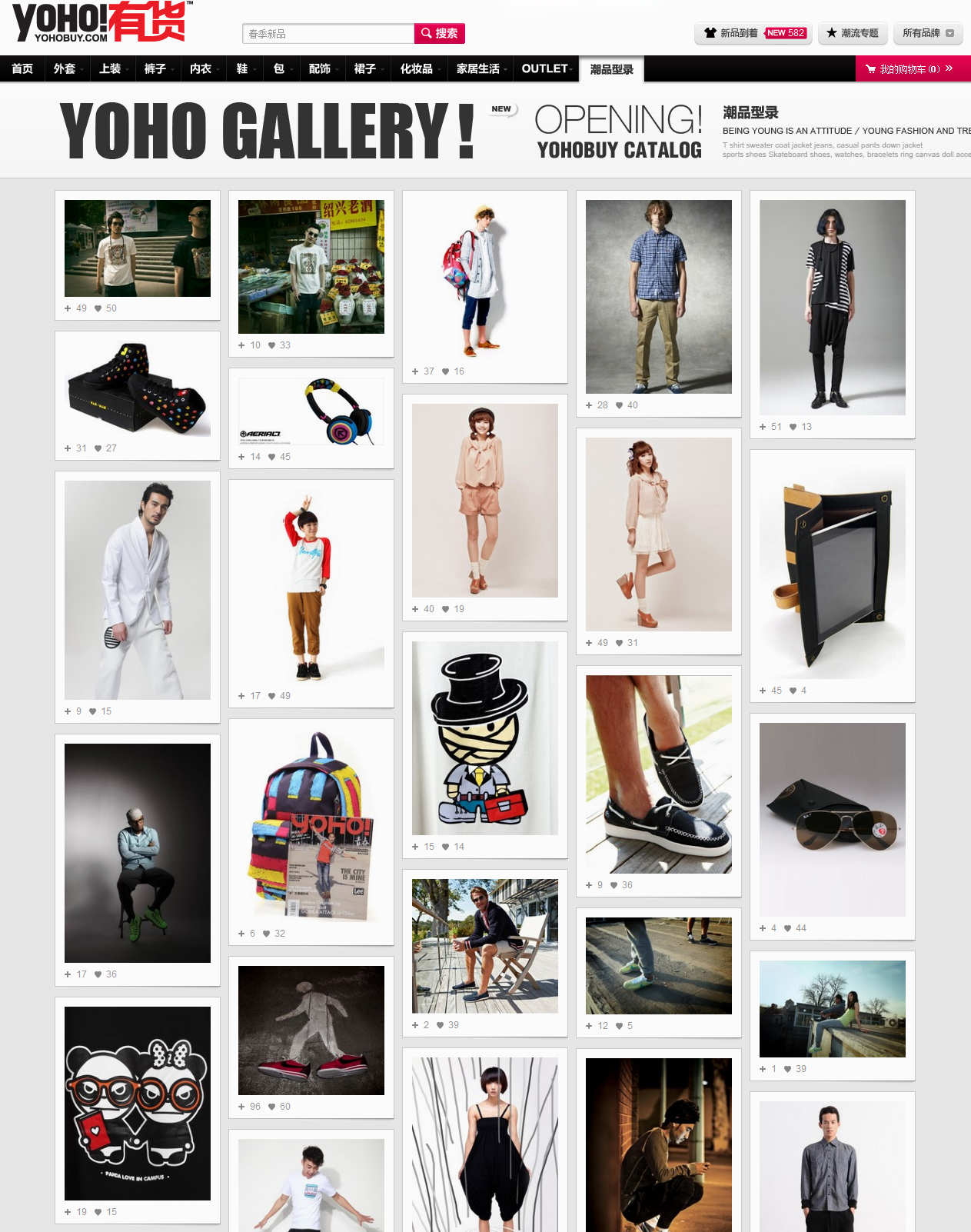 YOHO!有貨“潮品型錄”頻道類似于國外的Pinterest,這種類似于圖片博客的頁面展現形式受到來自互聯網的廣泛好評,其優勢主要體現于“圖片主視覺享受遠超過文字的閱讀體驗”,以圖片傳達的信息遠比文字生動和細膩,受眾對信息的認可度也隨之提高。不過,這種獨特的頁面展現形式也吸引了眾多追隨者的跟風效仿,國內已經出現很多的類似網站,單從服飾搭配類來說,有凡客的“凡客達人”和淘寶的“哇哦!”,也有專注于女性時尚領域服飾分享的“蘑菇街”和“美麗說”等等。這類平臺的目的是挖掘社會化媒體大潮中所蘊藏的商業價值并將其導向電子商務領域,他們都有一個特點:號召廣大的網友以“搭配達人”的身份曬搭配并介紹產品,鼓勵分享并給予一定的獎勵。那么,YOHO!有貨推出的“潮品型錄”與其他類似頁面相比有何不同?它將是“另一個模仿者”,還是“有想法的變革者”?