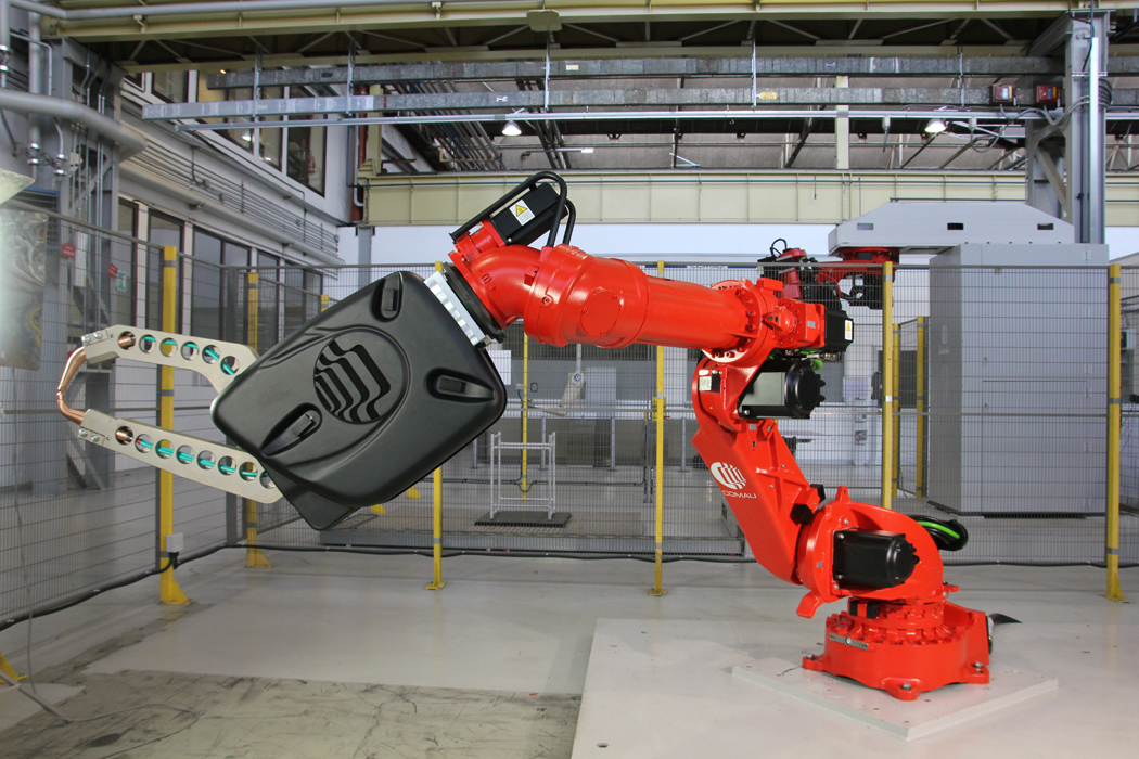 此型號機器人采用柯馬專利技術的“中空腕”設計,整體結構輕量化,且占地空間大幅減小,機器人本體重量由1080kg 降至698kg,移動速度總體提升約30%。Smart NJ4 90機器人主要用于柯馬車身焊裝總拼單元(OpenRobogate®)高密度工位,特別適用于在狹小空間內的運動作業(yè)。Smart NJ4-90機器人可配備柯馬新一代緊湊型鋁制焊槍(Compact versa Gun),該焊槍結構材料為鋁合金,符合世界級高精度加工制造標準(WCM Standard),自身重量降為上一代焊槍50%左右,而且重心更靠近機器人的連接端。槍體采用模塊化設計,零部件通用性強,零部件數(shù)量減少,極大降低后期維護費用。與柯馬新一代機器人 Smart NJ4-90 配合,使單位空間布置更多機器人成為可能,可大大提高了汽車制造行業(yè)的生產(chǎn)效率。