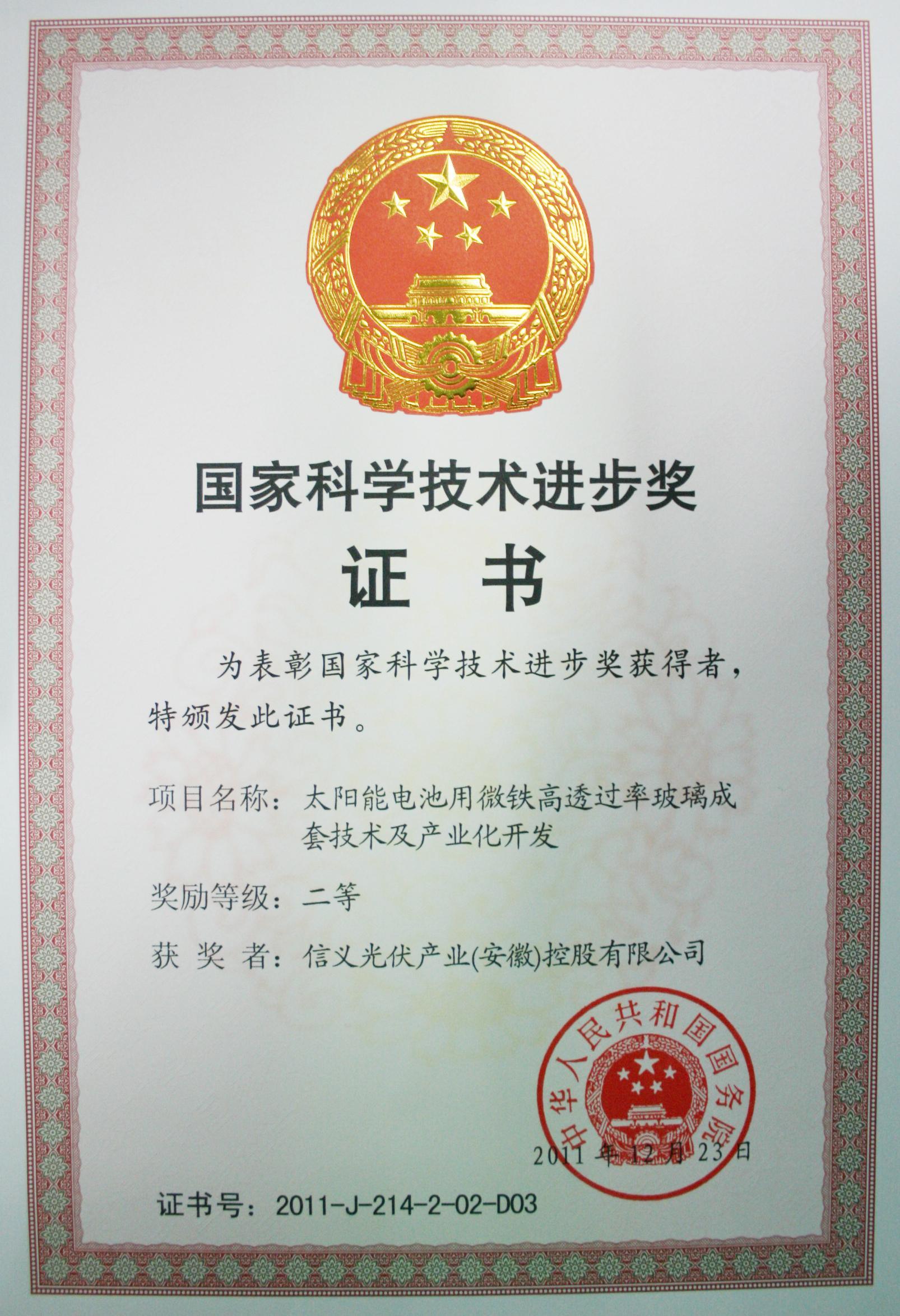 東莞2012年5月25日電 /美通社亞洲/ -- 日前,2011年度國家科學技術獎勵結果揭曉,由信義玻璃旗下的信義光伏產業(安徽)控股有限公司、蚌埠玻璃工業設計研究院和中國建材國際工程集團有限公司聯合完成的“太陽能電池用微鐵高透過率玻璃成套技術及產業化開發”成果榮獲2011年度國家科技進步二等獎。