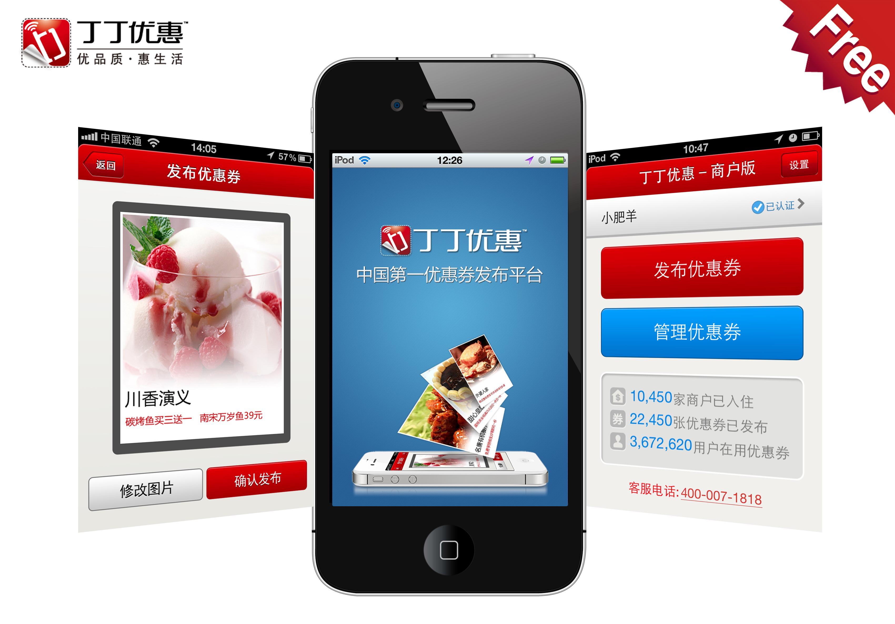 圖1:丁丁優惠(商戶版)正式發布,商戶可免費自助發布優惠券