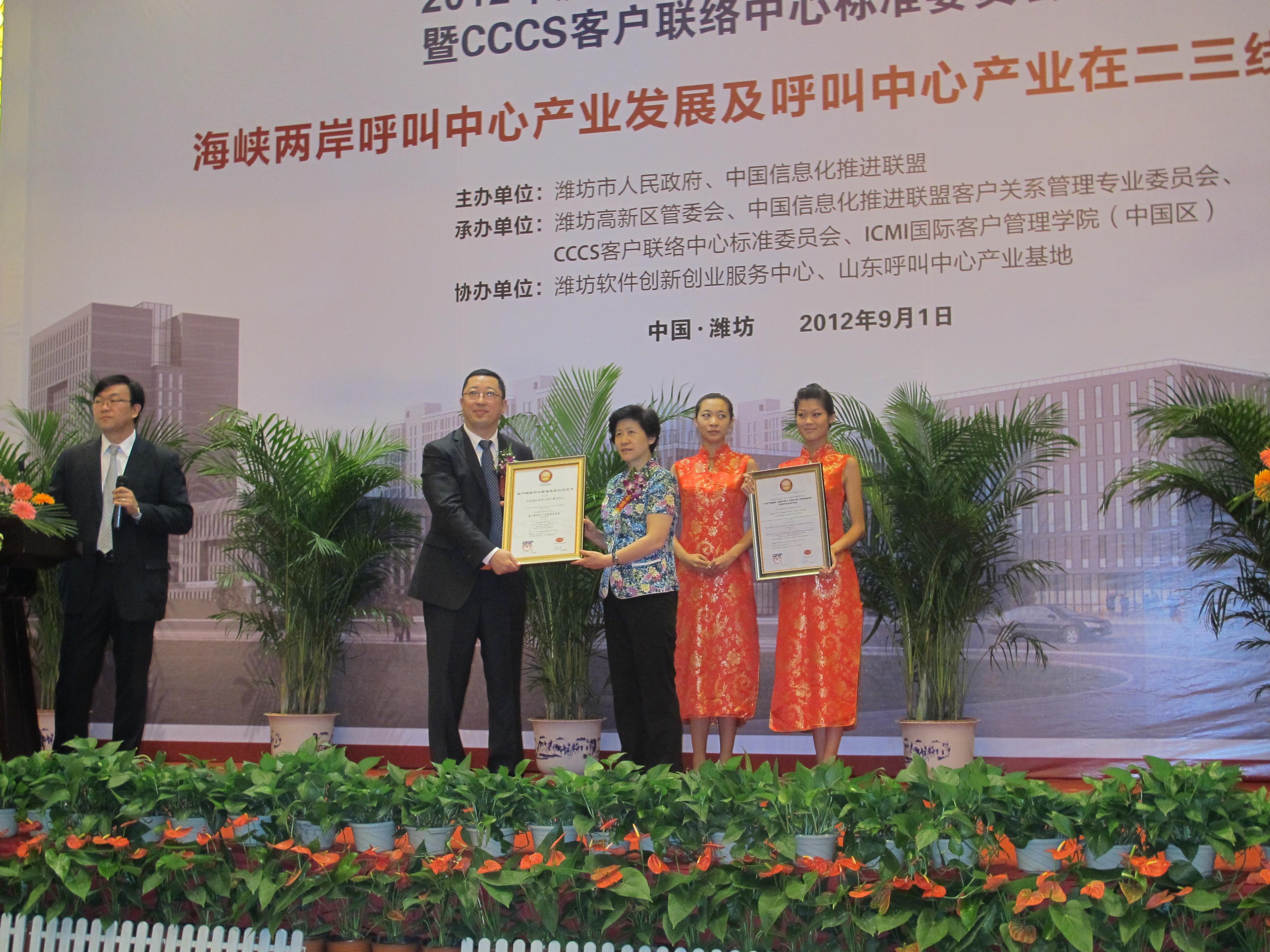 濰坊2012年9月10日電 /美通社/ -- 9月1日,由ICMI國際客戶管理學院(中國區)承辦的2012年度海峽兩岸呼叫中心產業高峰論壇在山東濰坊開幕。作為“第18屆魯臺經貿洽談會”經貿板塊的重要部分,在CCCS客戶聯絡中心標準委員會成立十周年之際,海峽兩岸呼叫中心產業及信息服務行業的專家、企業家、相關行業管理者共聚一堂,共商呼叫中心行業未來發展,就兩岸呼叫中心產業發展趨勢與新技術應用、中國呼叫中心平臺化基地發展模式、呼叫中心產業在二三線城市的發展等議題進行了演講、圓桌交流。此次會議吸引了國內外近百家企業參加。