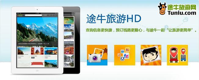 “途牛旅游HD”新鮮面市,查詢信息更快捷,預訂線路更隨心,下載“途牛旅游HD”,與途牛一起“讓旅游更簡單”!