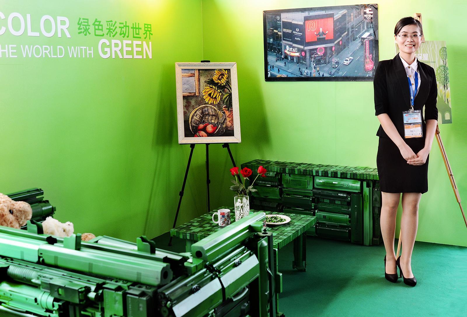 珠海2012年9月26日電 /美通社/ -- 9月24日,第六屆“天威杯”打印專利暨第二屆環保創新設計大賽頒獎典禮在中國(珠海)國際打印耗材展覽會現場隆重舉行。這一被美譽為打印耗材行業創新“奧斯卡”的公益賽事,本屆以“綠色彩動世界”為主題,從賽事推廣、現場裝飾、節目表演等多方面精心策劃向公眾傳播了“低碳環?!崩砟?,其中現場展出的亞洲首個以回收碳粉盒及噴墨盒拼成藝術家具組成的“再生環保屋”成為全場關注焦點。
