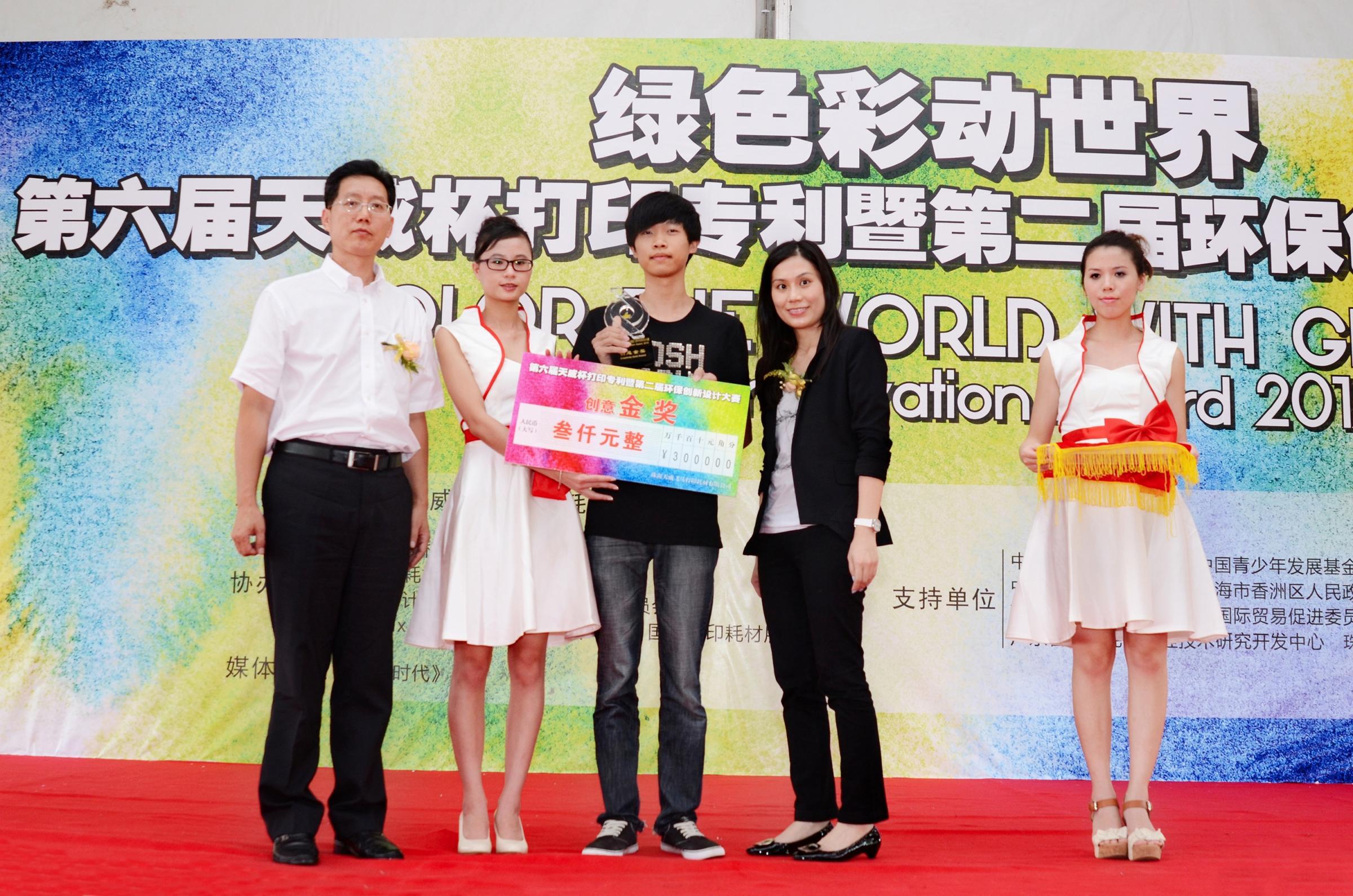 珠海2012年9月28日電 /美通社/ -- 9月24日,第六屆“天威杯”打印專利暨第二屆環(huán)保創(chuàng)新設(shè)計(jì)大賽頒獎(jiǎng)典禮在中國(珠海)國際打印耗材展覽會(huì)現(xiàn)場隆重舉行。大賽首度聯(lián)手中國青少年發(fā)展基金會(huì),為參與“希望工程激勵(lì)行動(dòng)”公益項(xiàng)目的所有環(huán)保團(tuán)隊(duì)提供“創(chuàng)意獎(jiǎng)”參賽平臺,最終來自北京師范大學(xué)-香港浸會(huì)大學(xué)聯(lián)合國際學(xué)院“Green Action”小組的環(huán)保送禮項(xiàng)目,獲得創(chuàng)意金獎(jiǎng)。