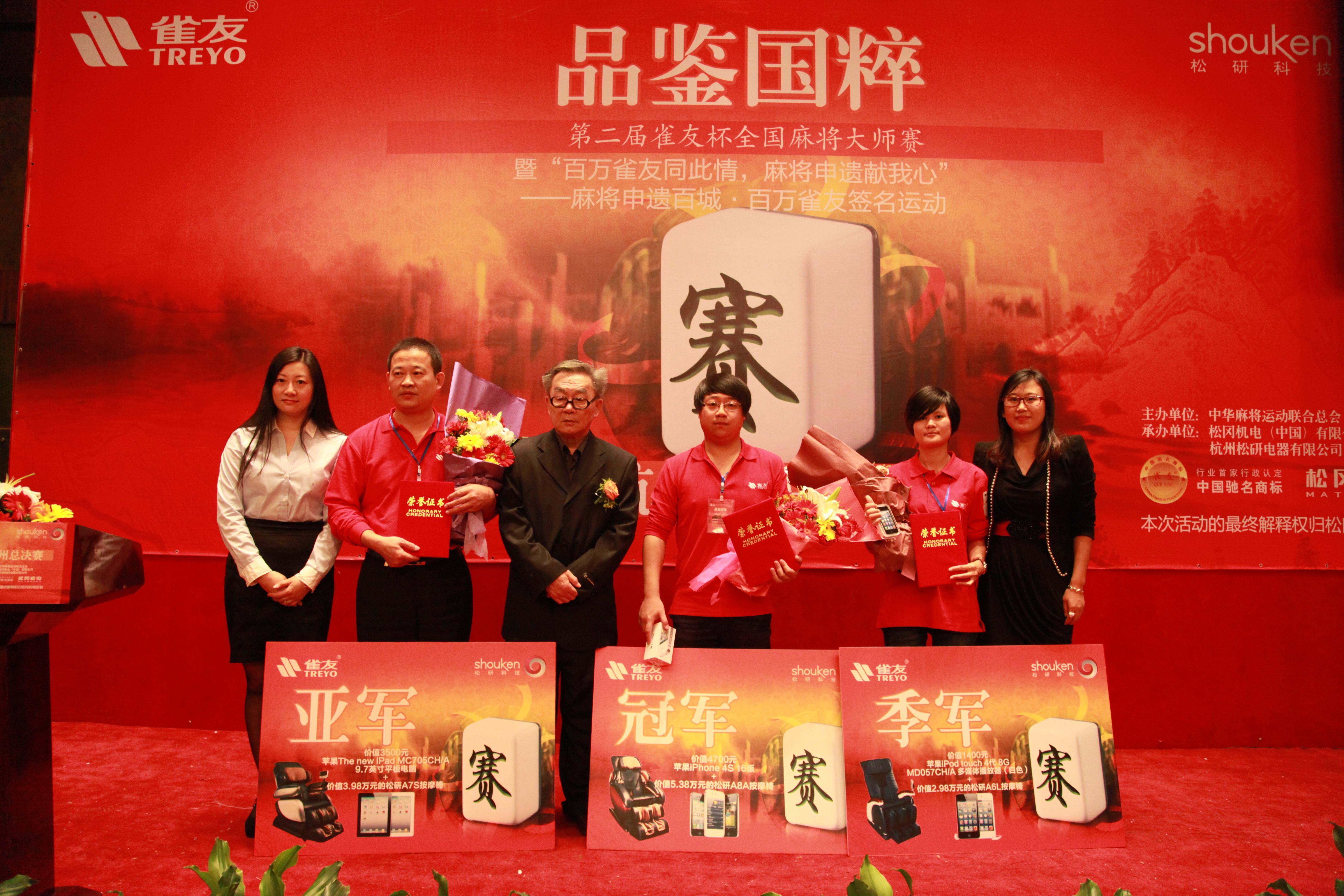 杭州2012年10月29日電 /美通社/ -- 10月27日,品鑒國(guó)粹第二屆雀友杯全國(guó)麻將大師賽總決賽在杭州眾安假日酒店圓滿落幕。中華麻將運(yùn)動(dòng)聯(lián)合總會(huì)會(huì)長(zhǎng)盛琦,松岡機(jī)電(中國(guó))有限公司董事長(zhǎng)魏國(guó)華、常務(wù)副總經(jīng)理鄭忠良、營(yíng)銷中心副總經(jīng)理何亦男、營(yíng)運(yùn)中心副總經(jīng)理潘林、營(yíng)運(yùn)中心總監(jiān)傅亦明以及杭州松研電器有限公司大客戶總監(jiān)于雪梅等攜42位來(lái)自全國(guó)21個(gè)分賽區(qū)的冠亞軍麻將大師出席大賽。本屆賽事仍由中華麻將運(yùn)動(dòng)聯(lián)合總會(huì)主辦,由目前全球較大的自動(dòng)麻將機(jī)生產(chǎn)基地之 -- 松岡機(jī)電(中國(guó))有限公司承辦,并獲得按摩椅產(chǎn)業(yè)領(lǐng)先者杭州松研電器有限公司的全程贊助。