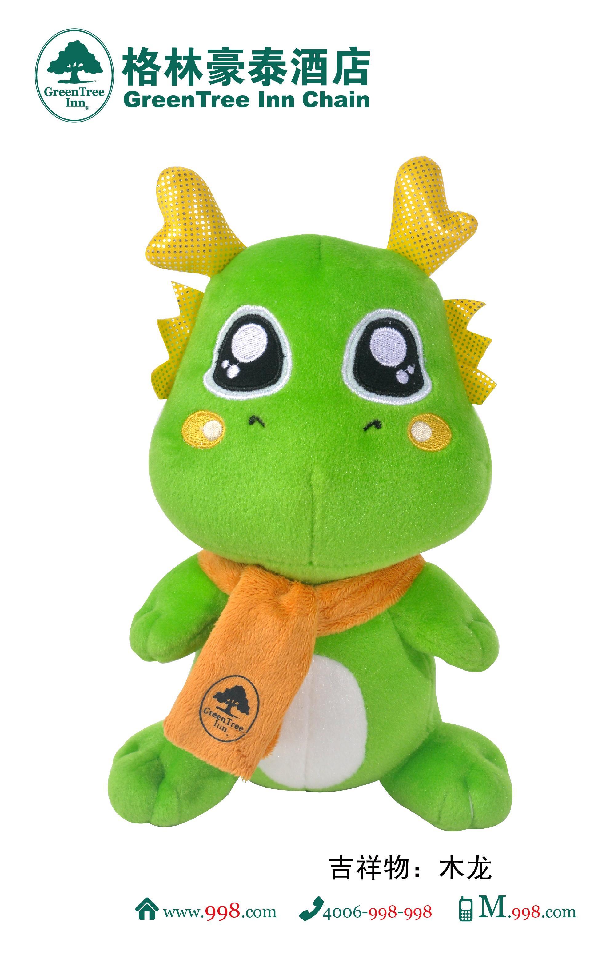 2012年恰逢龍年,格林豪泰吉祥物“木龍”的設(shè)計,以擬人的手法,在傳統(tǒng)“龍”的形象中融入現(xiàn)代“萌”的元素,變幻成一個活潑可愛的公仔。“木龍”外形設(shè)計憨態(tài)可掬,像一個迎賓的小精靈,迎接格林豪泰八方來客。與典雅穩(wěn)重的“格林綠”有所不同,“木龍”選取“蘋果綠”作為主色調(diào),同時搭配少量黃色元素,跳脫而鮮明。“蘋果綠”與格林豪泰整體風(fēng)格相融洽,寓意酒店及客人都生機勃勃、充滿活力。秉承格林豪泰高品質(zhì)、高性價比中檔商務(wù)型酒店品牌定位,首批毛絨“木龍”采用克重高、密度大、易清洗的賽樂絨面料,填充料為全新一級“匯維仕”三維真空 PP 棉,不含甲醛,不易變形。格林豪泰注重通過細節(jié)體現(xiàn)品牌魅力,吉祥物“木龍”的設(shè)計也不例外。格林豪泰為吉祥物“木龍”設(shè)計了圍巾、絲帶、三角巾等多款配飾,增添了“木龍”的時尚范兒。