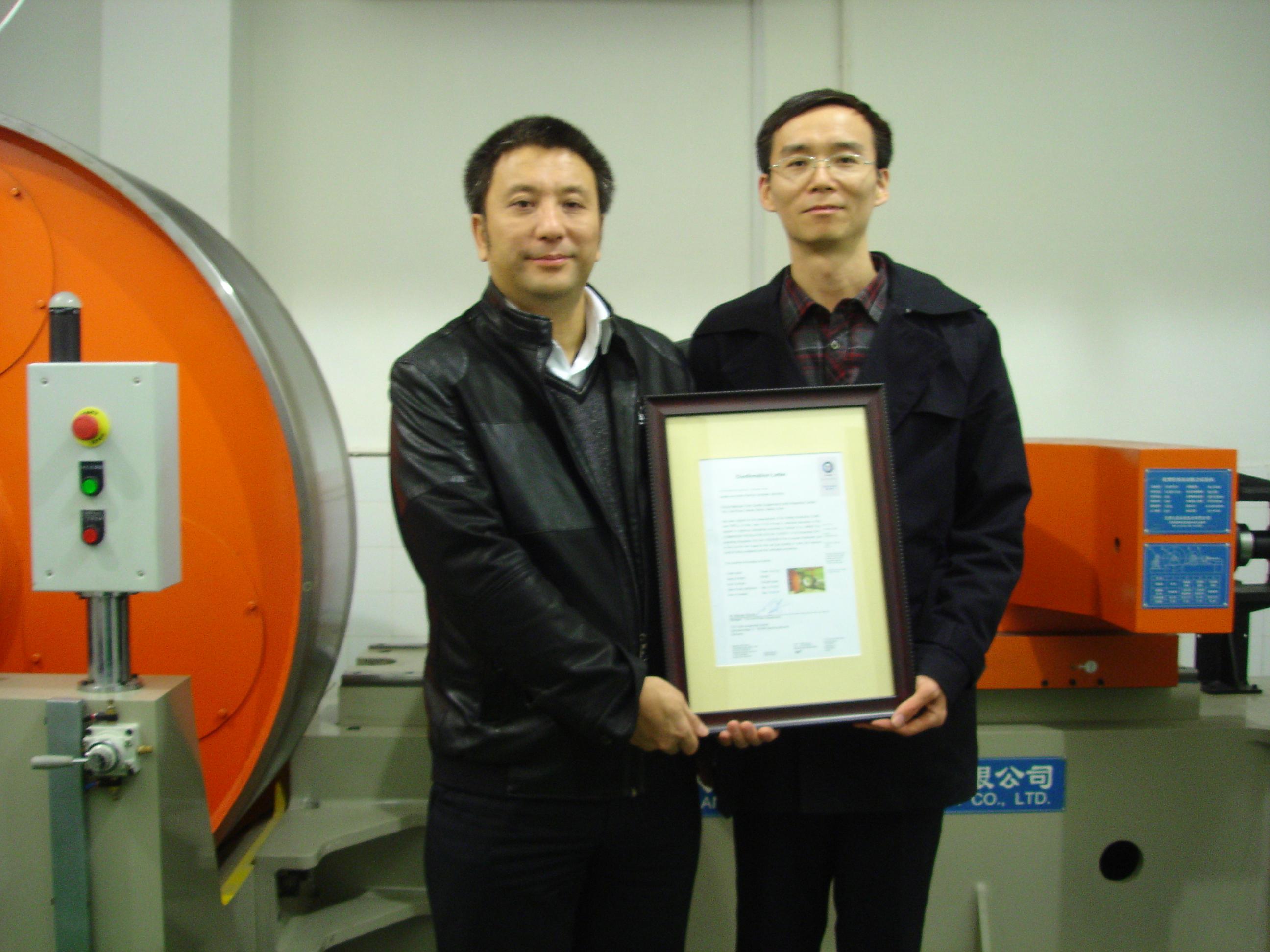 今年9月份,TUV SUD成功為國家橡膠輪胎質量監(jiān)督檢驗中心滾動阻力試驗機完成了對比試驗。該滾阻試驗機也是第一臺國產滾阻試驗機,直徑為1.7米,符合歐盟對滾動阻力C1,C2輪胎測試的要求。對比試驗的結果顯示,該滾動阻力試驗機對標準輪胎測量的結果接近歐盟規(guī)定的平均值,通過對比測試。TUV SUD對該滾阻試驗機正式頒發(fā)了比對結果合格證明。