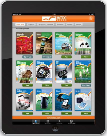 根據貿發局統計,約70%買家擁有智能手機或平板電腦,買家通過移動裝置查閱電郵的時間超過30%。貿發局掌握市場需求,其“Appgazine”移動版雜志具備多項功能,方便買家隨時透過手機和平板電腦瀏覽供應商資料,并進行采購,同時提升供應商的推廣成效。