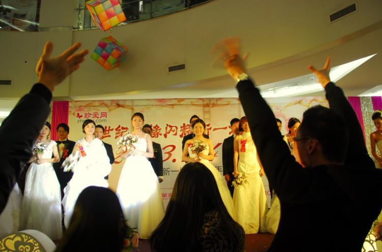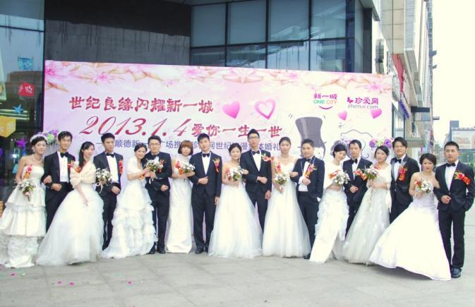 據主辦方新一城介紹,本次與珍愛網攜手合作的“2013.1.4愛你一生一世”集體婚禮對于9對有結婚打算或即將步入婚姻殿堂的新人來說意義非凡。其中有一對新人還是一大早去民政局排隊領證,中午才趕來的,在2013年1月4日“愛你一生一世”這個歌特別的日子成為合法夫妻并且參加集體婚禮,對于他們來說確實賦予了不一樣的意義。