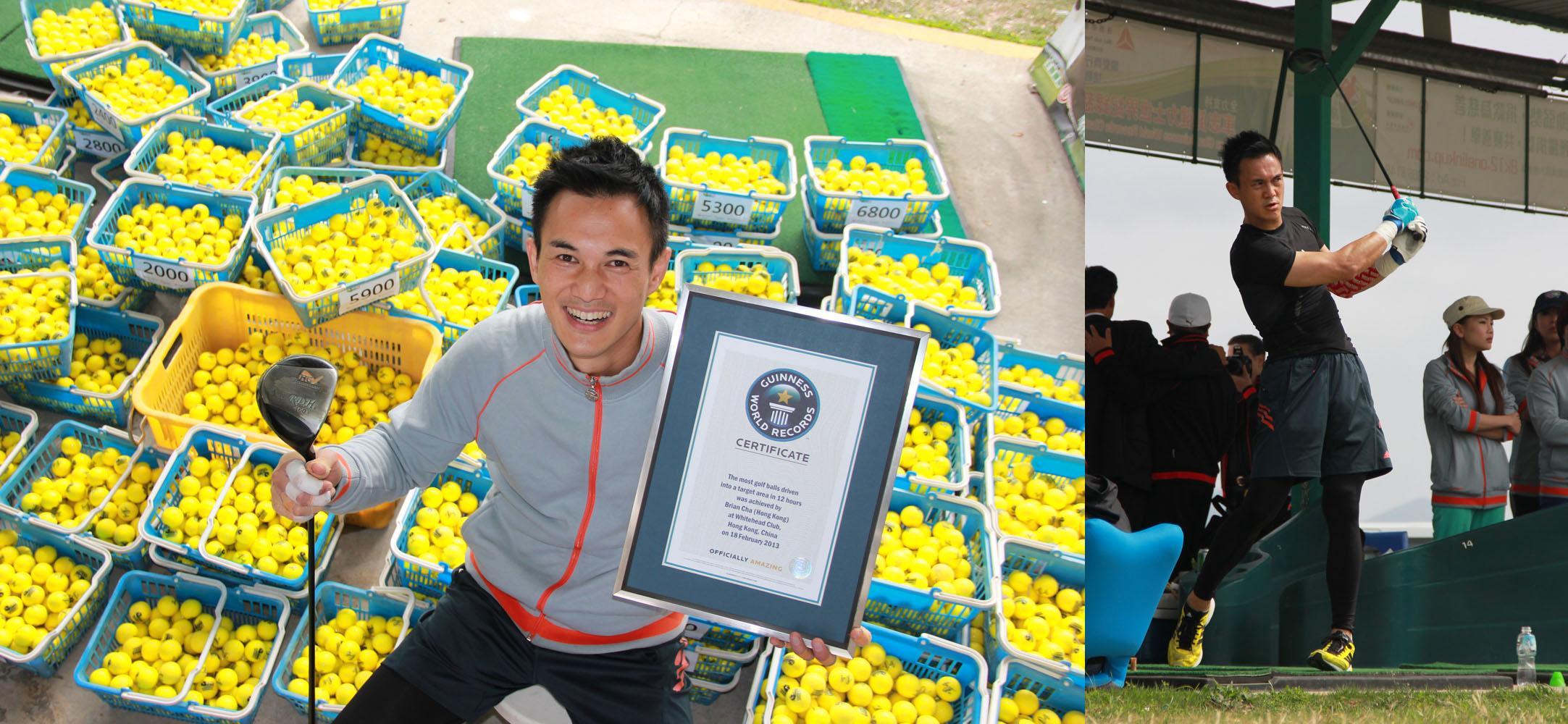香港2013年3月12日電 /美通社/ -- 香港星級健身教練車志健 (Brian Cha)于2013年2月18日,凌晨12時至中午12時的12個小時內(nèi),在沙田馬鞍山白石俱樂部連續(xù)將9,959個高爾夫球打到100碼外。成功刷新健力士世界紀(jì)錄。
