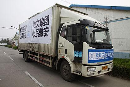 北京2013年4月26日電 /美通社/ -- 4月20日早上10點,依文員工接到集團(tuán)董事長夏華指示,全速趕往北京總倉庫,為雅安人民籌備服裝物資,對災(zāi)區(qū)進(jìn)行援助。依文集團(tuán)捐贈的200萬元物資及聯(lián)想控股捐贈的300萬物資均由依文安排車運往雅安,到達(dá)雅安后交付給壹基金的物資中轉(zhuǎn)站集結(jié),根據(jù)災(zāi)情需要隨時進(jìn)入蘆山縣發(fā)放物資。