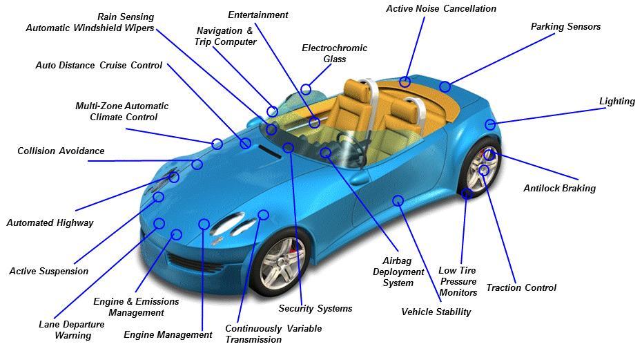 當今汽車中的電子類功能(圖1)不斷增加,并將很快超過機械類功能所提供的價值。電子類功能也正成為車型的主要競爭元素。車型按時交付的制約因素已經(jīng)不再是機械設(shè)計,而是電子和軟件。因此不僅要快速設(shè)計出這些電子部件來,還要讓其具備較高的性能、質(zhì)量并滿足可靠性標準。如果它們的可靠性較低,且在售后出現(xiàn)故障,那么企業(yè)不但將承受巨額的保修和召回費用,還可能令其聲譽受損。