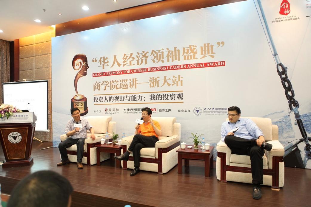 5月24日下午,值浙江大學建校116周年之際,由鳳凰網、《21世紀經濟報道》、中央人民廣播電臺經濟之聲主辦的“華人經濟領袖盛典”商學院巡講走進了浙江大學管理學院,與位于經濟前沿的浙江大學管理學院的學子們激蕩思想,分享經驗。