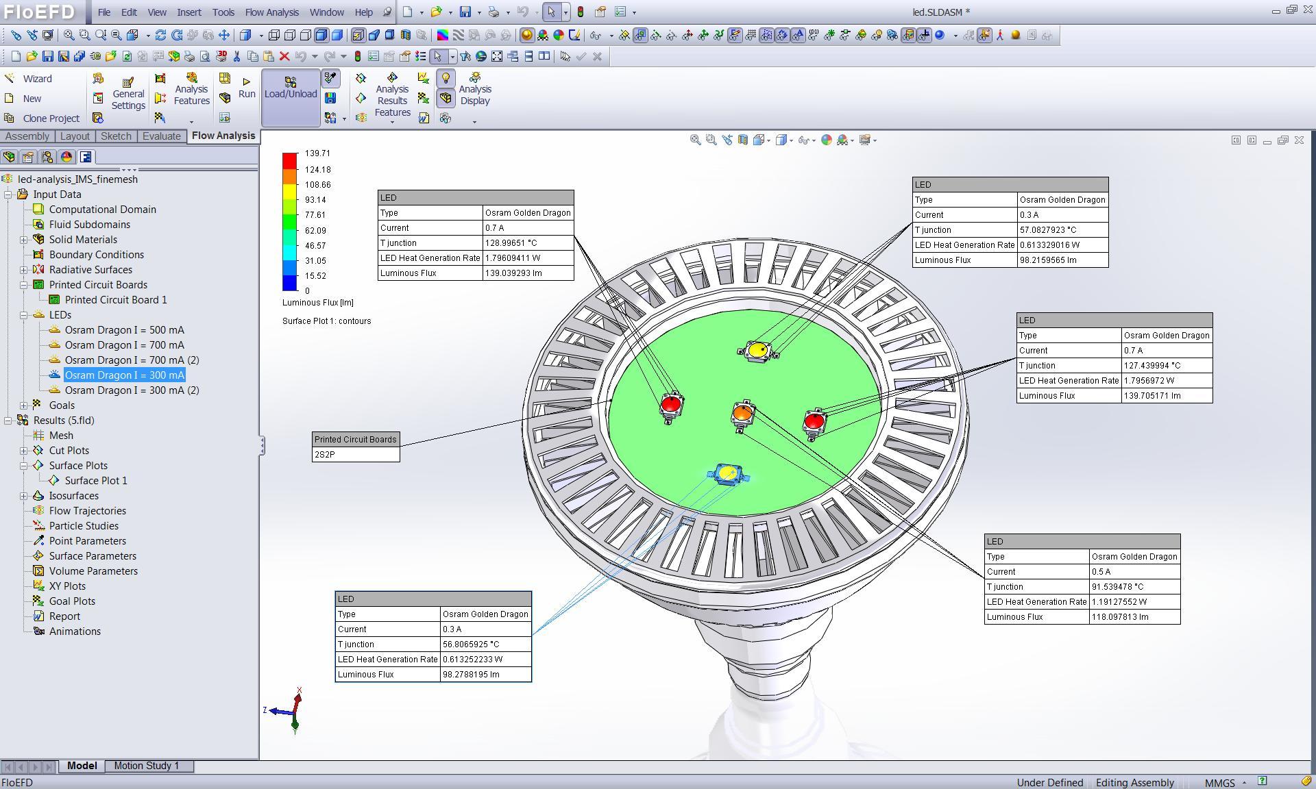 進(jìn)行高度加速的壽命測(cè)試還能幫助你選擇在產(chǎn)品使用期內(nèi)具有高可靠性的最合適的 LED。此外,熱仿真可確保熱管理系統(tǒng)在 LED 的整個(gè)生命周期提供適宜的環(huán)境,并且較大程度地降低對(duì)質(zhì)量和性能的影響。 FloEFD 同步計(jì)算流體力學(xué)方法還通過(guò)在設(shè)計(jì)初期進(jìn)行仿真加速了產(chǎn)品設(shè)計(jì)周期,縮短了產(chǎn)品面市時(shí)間并削減了開(kāi)發(fā)與樣機(jī)設(shè)計(jì)成本。