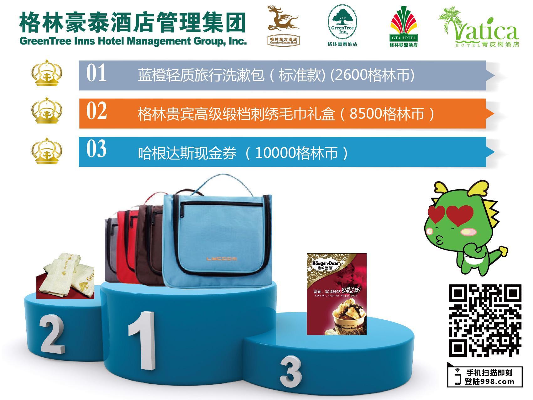 通過官網www.998.com、智能手機m.998.com、手機APP預訂,鉑金卡較高積累房費3倍格林幣。