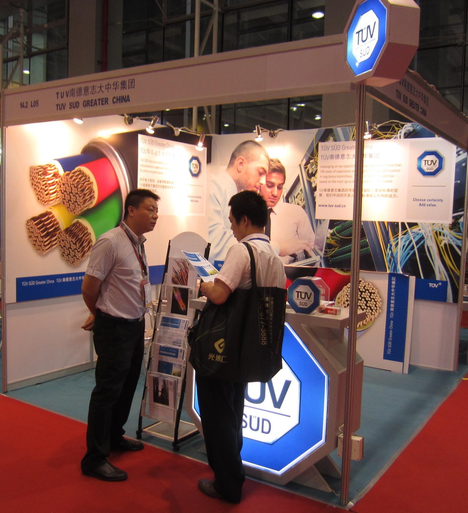廣州2013年6月18日電 /美通社/ -- 2013年6月9日至11日,為期3天的2013廣州國際電線電纜及附件展覽會(以下簡稱線纜展)在廣州琶洲展覽中心成功舉辦。TUV 南德意志集團(tuán)(以下簡稱TUV SUD )的專家團(tuán)隊(duì)?wèi){借專業(yè)的測試和認(rèn)證技術(shù)背景,為線纜展的參展企業(yè)及采購商解答關(guān)于線纜出口相關(guān)技術(shù)標(biāo)準(zhǔn)等問題,為廣大線纜制造商和出口商提供出口貿(mào)易技術(shù)壁壘的一站式解決方案。