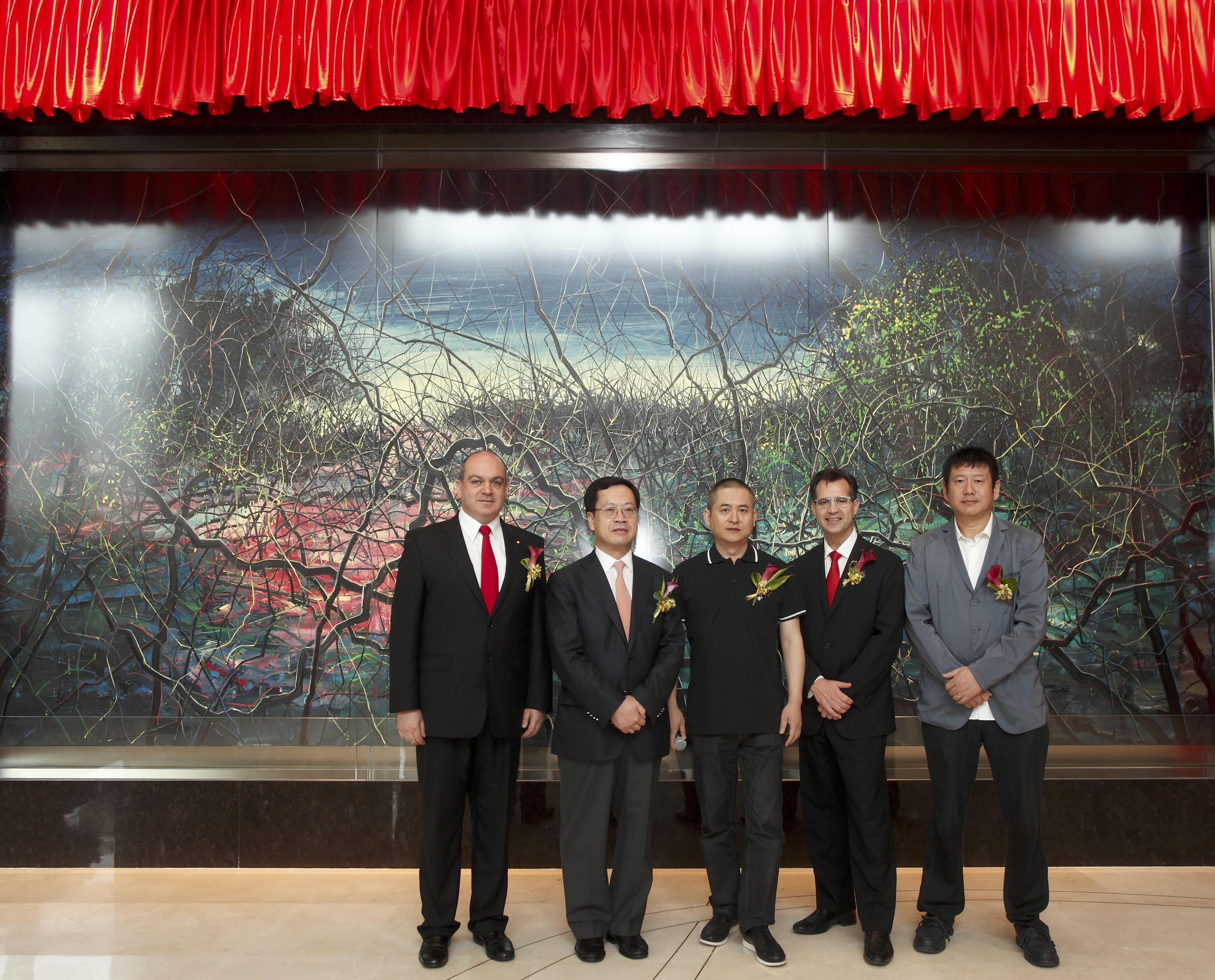 藝術(shù)品是香格里拉酒店不可或缺的一部分,靜安香格里拉更不例外。酒店特邀兩位中國(guó)當(dāng)代藝術(shù)大師為酒店量身創(chuàng)作了數(shù)幅藝術(shù)珍品。當(dāng)客人抵店后,一幅長(zhǎng)5.9米、高2.9米,由曾梵志先生創(chuàng)作的油彩畫便映入眼簾。而出自周春芽先生經(jīng)由豫園五景啟發(fā)的五幅畫作也陳列在酒店中。
