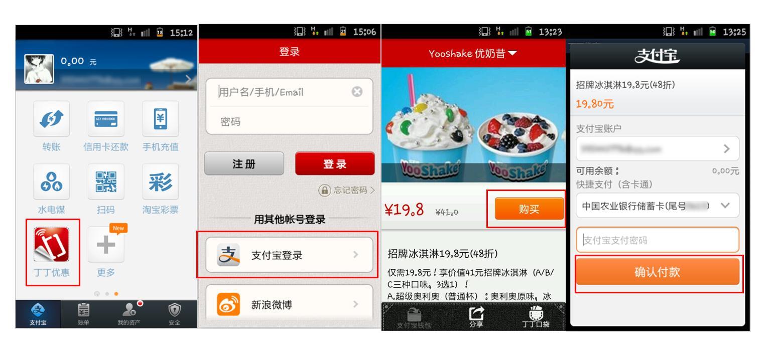 上海2013年7月10日電 /美通社/ -- 7月10日,國內較大的手機優惠券平臺 -- 丁丁優惠發布 Android 3.0.1版本。據丁丁優惠方面介紹,升級后的版本較大的變化是與支付寶錢包進行了賬戶打通,用戶可以直接用支付寶賬號登陸丁丁優惠,完成優惠券的使用、購買和驗證功能。