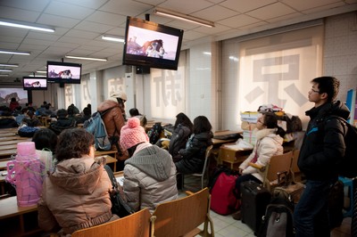 一位略上年紀的阿姨正熟練地指揮著一群年紀相仿的孩子拿行李排隊。“我們從黑龍江齊齊哈爾過來的,一共12個孩子。這是我外孫女,其它都是她同學,中考完了約著來新東方學習。我們坐了16個小時的火車過來,有個孩子沒買到票,補了軟臥過來的。”張阿姨笑著介紹。作為一名退休的幼兒園教師,她將孩子們管理得井井有條。
