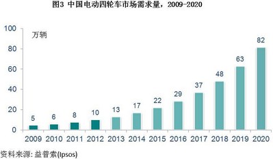 報告顯示,隨著農村地區消費實力的進一步釋放,益普索(Ipsos)預測到2020年,對電動自行車的需求將達到3,157萬輛,2013年至2020年期間年復合年增長率為4%,而電動自行車動力電池的銷售額預計在此期間實現6%的年復合增長率,一級市場和二級市場的銷售額預計達到67億美元。據益普索(Ipsos)報告數據分析,受農村市場中老年人的追捧,電動三輪車制造商近年來已實現快速增長,2012年銷售量近600萬輛,同比增長60%;到2020年,鑒于中國老齡化人口的不斷增多,銷售量有望進一步攀升至2,643萬輛,而電動三輪車動力電池的銷售額預計在2013年至2020年間取得28%的復合年增長率,達到45億美元。與此同時,隨著中國大力倡導發展節能、環保產品的新形勢下,低速電動四輪車將迎來大的發展機遇,益普索(Ipsos)預測到2020年,中國低速電動四輪車總需求有望達到82萬輛,支持低速電動四輪車有較強價格競爭優勢的鉛酸電池在未來也將獲得新的增長。