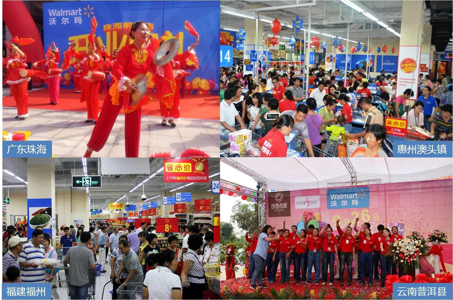 沃爾瑪在福建福州、廣東珠海、云南普洱縣、及惠州澳頭鎮(zhèn)的四家全新購物廣場開業(yè)盛況
