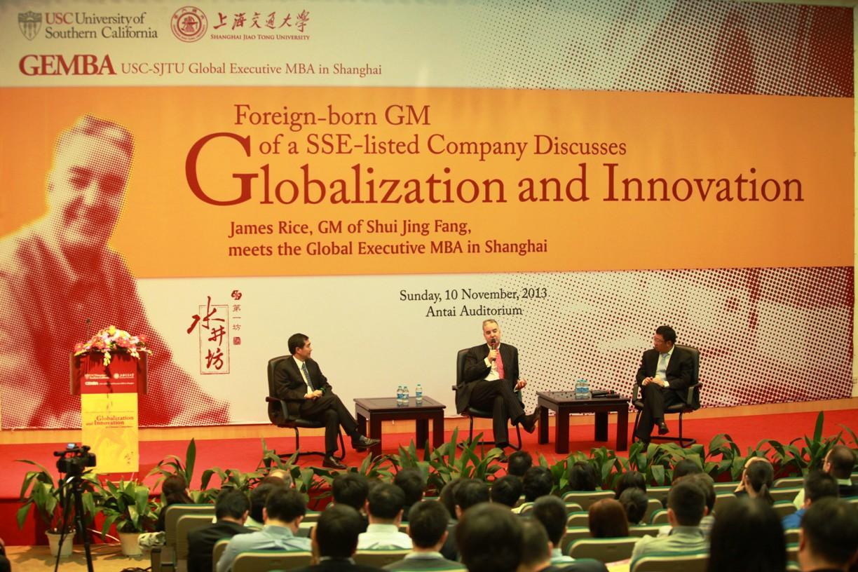 上海交通大學—美國南加州大學全球EMBA項目(GEMBA),自2003年獲得國家教育部批準以來,致力于為中國市場培養具有全球領導力的高級管理精英。 至今已有27個國家和地區的高級管理人員參加過項目課程,GEMBA是名符其實的全球化EMBA項目。此次Jim Rice大米的演講活動是GEMBA項目舉辦的“中國企業:全球化與創新”系列演講的活動之一,此前還曾邀請到一號店運營總監Jonathan Wang王嘉豪先生作為演講嘉賓,此類活動通過國際化企業高層與學員、校友的交流,帶來不同企業管理經驗的分享與碰撞,為 GEMBA 項目培養更多未來外資、合資企業的領導者提供良好的平臺與視野。