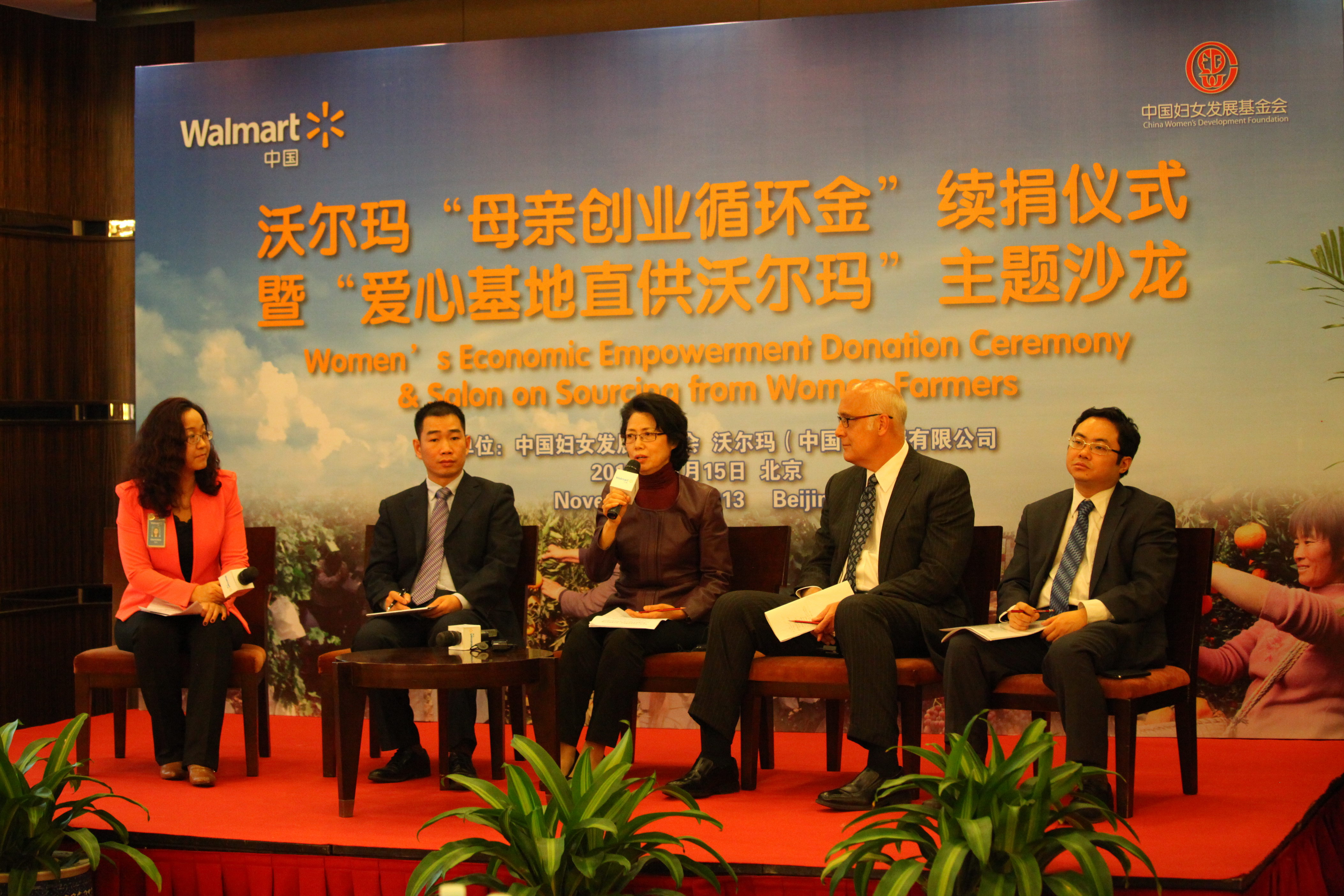 中國婦女發(fā)展基金會(huì)秘書長秦國英,沃爾瑪中國公司事務(wù)高級(jí)副總裁博睿(Raymond Bracy),以及來自公益領(lǐng)域的專家、學(xué)者等嘉賓出席了今天舉行的“母親創(chuàng)業(yè)循環(huán)金”續(xù)捐儀式以及“愛心基地直供沃爾瑪”可行性研討。