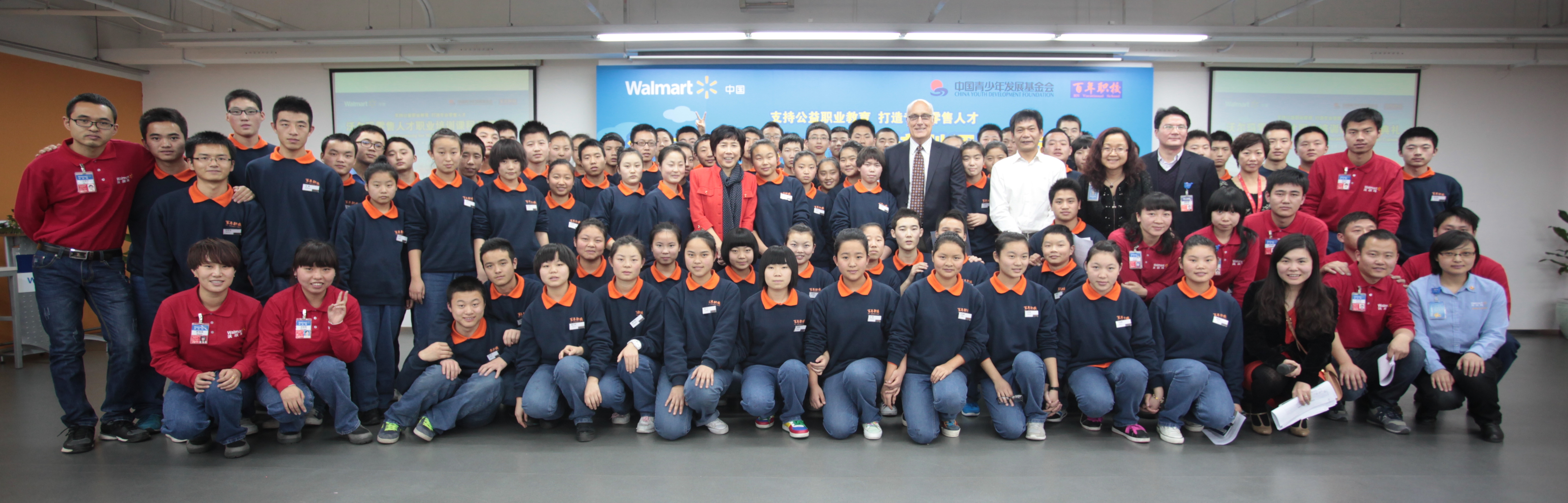 中國青少年發展基金會秘書長涂猛先生,百年職校發起人和理事長姚莉女士,沃爾瑪中國公司事務高級副總裁博睿(Raymond Bracy),及來自北京百年職校的全體師生參加了當天的“沃爾瑪零售人才職業培訓課程”開課典禮。此外,來自沃爾瑪北京地區的營運管理人員及員工代表也參與了當天的活動。