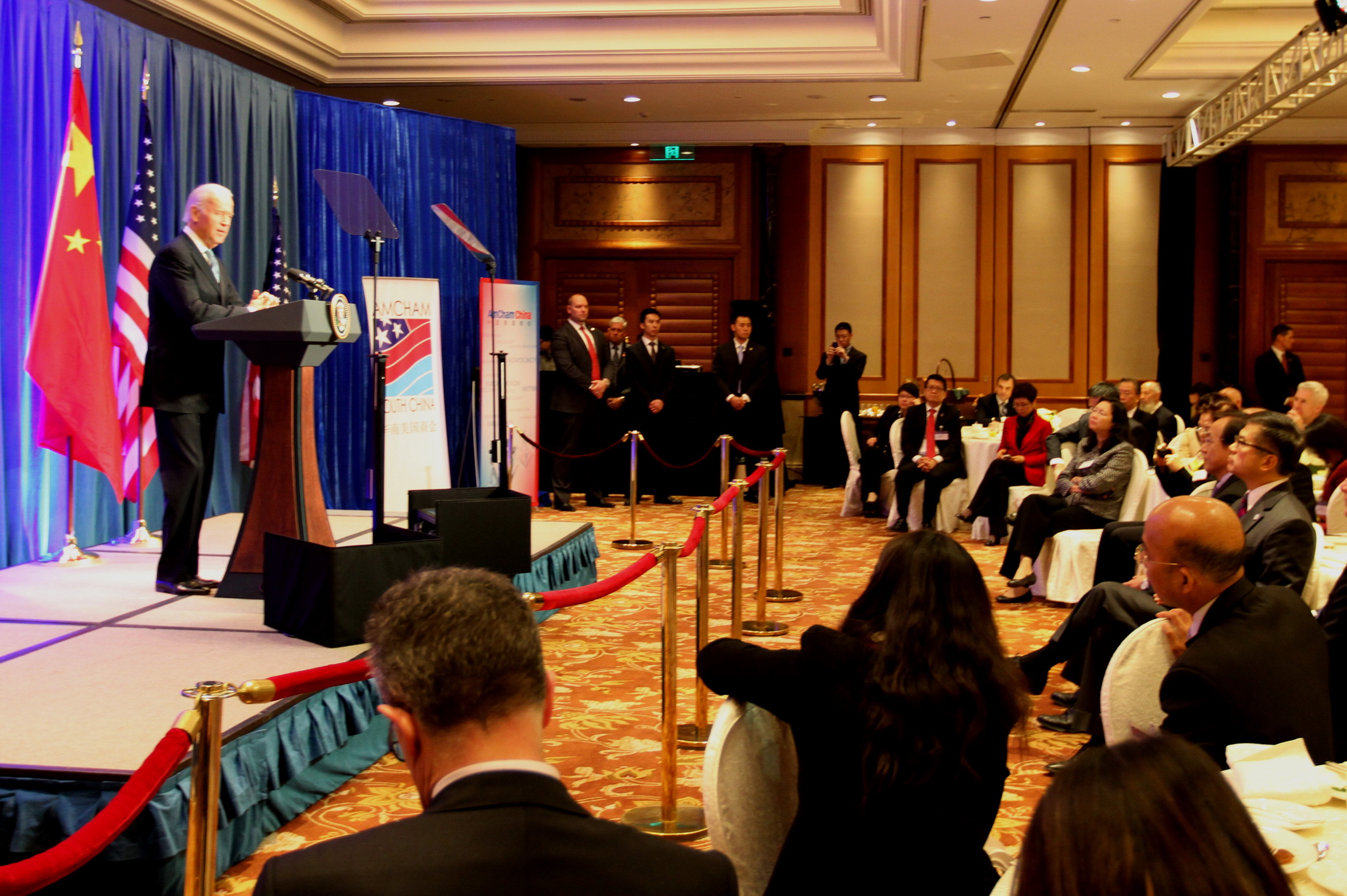 與會的華南美國商會會員企業代表表示拜登副總統在早餐會上的發言有著積極意義,同時他日前與中國國家領導人的會晤將促進美中經貿關系的進一步發展與加強。